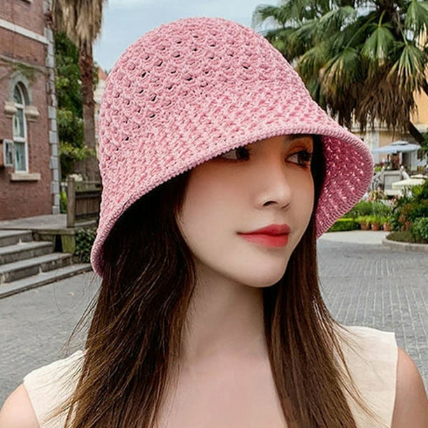 Solid Color Bow Decor Crochet Hat Summer Sunscreen Beach Foldable Vacation Bucket Hat For Women Walmart Ca